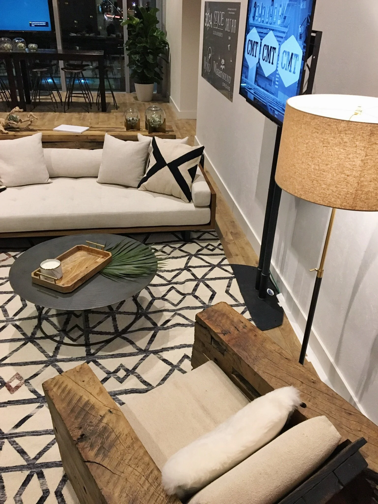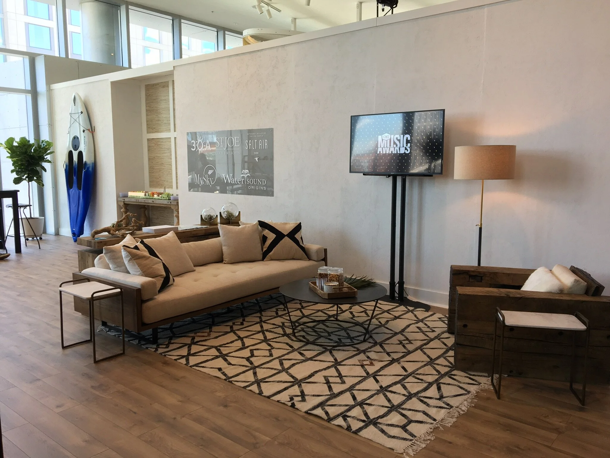Sponsored by Berkshire Hathaway, this backstage hospitality area was designed to mimic a beachy loft of the East Coast’s beloved 30A. Musical guests and crew were able to relax, connect, and hang out in this oasis behind stage